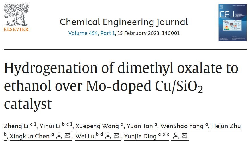 歐世盛催化劑評價裝置助力大連化物所/浙師大杭州高等研究院草酸二甲酯(DMO)選擇性加氫研究